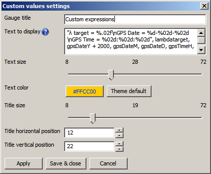 • the title of the gauge (e.g. Custom expressions)