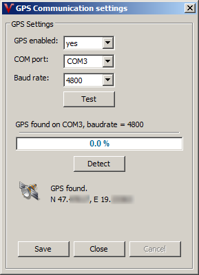 - Open Preferences >> GPS Communication dialog