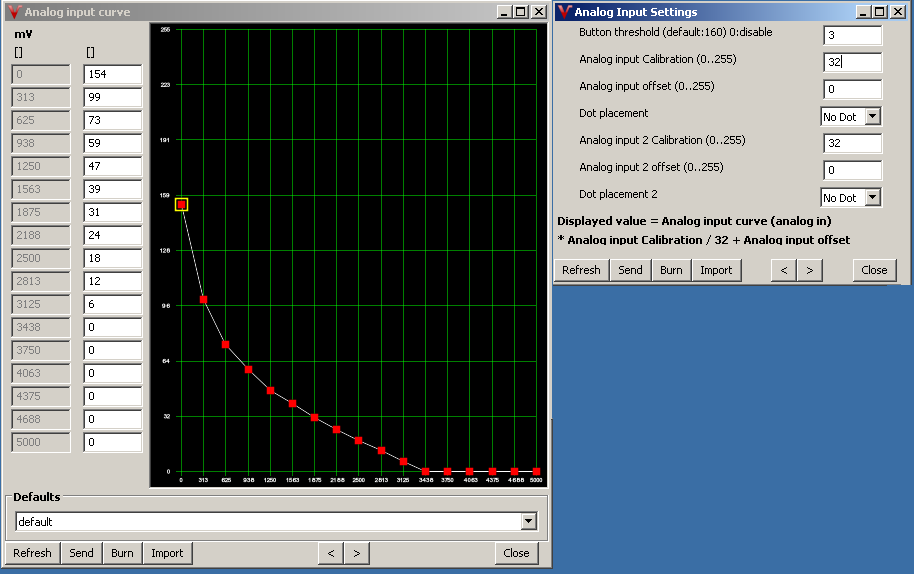 This curve assigns calculation value to input voltage. Useful to make non-linear characteristic.