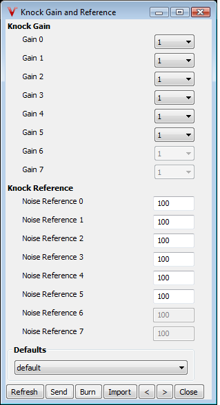 • If your knock specific cylinder value is lower than required (lower than knock value average) increase the gain for that specific cylinder, if higher than decrease gain for that specific cylinder
